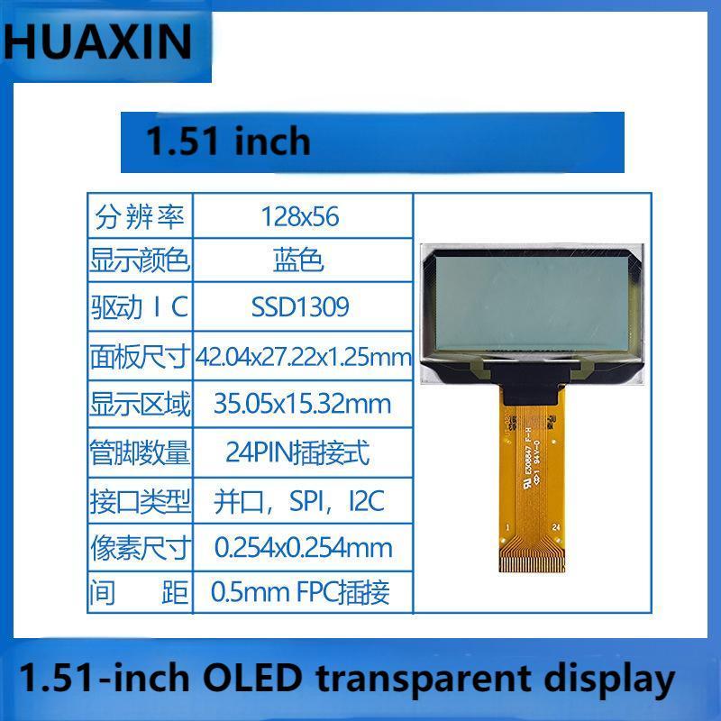 จอแสดงผล OLED โปร่งใสขนาด 1.51 นิ้ว ความละเอียด 128×56 พร้อมอินเทอร์เฟซปลั๊กอิน 24 พิน เหมาะอย่างยิ่งสำหรับหน้าต่างอัจฉริยะ อุปกรณ์อิเล็กทรอนิกส์เชิงสร้างสรรค์ และแอปพลิเคชันหน้าจอโปร่งใสที่ส่องสว่างในตัว