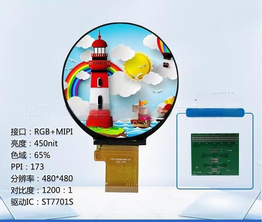 หน้าจอวงกลมขนาด 2.85 นิ้ว ความละเอียด 480X480 จอ LCD